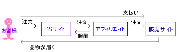 その販売店と当サイトの間にいるところが、アフィリエイトです。